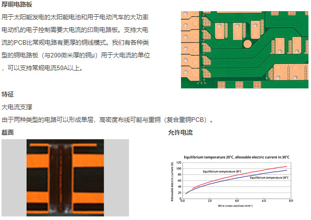 型的铜电路板(与200微米厚的铜μ)用于大电流的单位,可以支持常规电流50A以上。